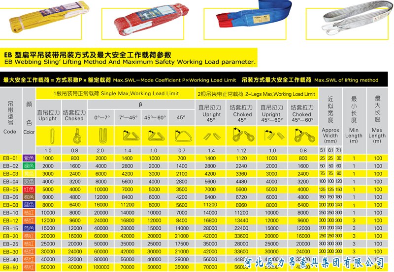 扁平吊裝帶的***大載荷范圍為:0-50噸,長度范圍為:1-100米。